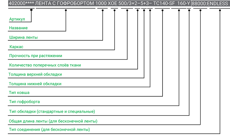 При изготовлении конвейерных лент с гофробортом и ковшами используются усиленные слоями ткани ковши с большой площадью основания, обладающие повышенной стойкостью к истиранию.